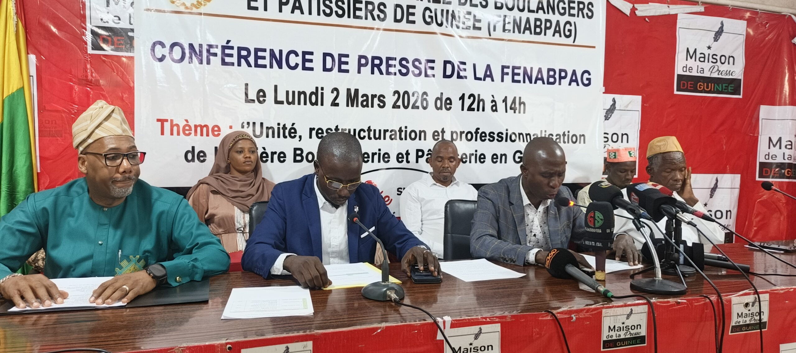 La Fédération nationale des Boulangers et Pâtissiers de Guinée (FENABPAG) a tenu, ce lundi 2 mars 2026, une conférence de presse à la Maison de la presse autour du thème : « Unité, restructuration et professionnalisation de la filière Boulangerie et Pâtisserie de Guinée ».