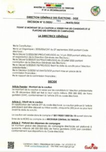 La DGE précise également que le plafond des dépenses de campagne électorale est fixé à quarante milliards (40 000 000 000 GNF) par candidat.