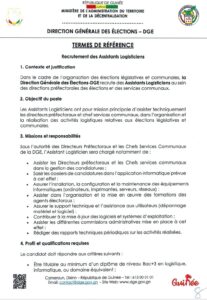 À travers ce recrutement, la DGE entend renforcer ses capacités opérationnelles au niveau local afin de garantir une gestion efficace et transparente des opérations électorales.