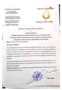 Dans une circulaire adressée aux directeurs, enseignants, élèves et partenaires scolaires, il met en garde contre le retard et demande la mise en œuvre immédiate de mesures conformes aux règlements internes des écoles, afin de préserver le bon déroulement des programmes d’enseignement.