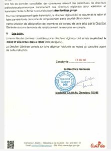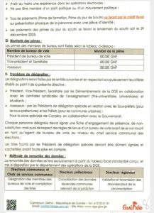 Signée par la Directrice générale de la DGE, Madame Camara Djenabou Touré, cette directive précise la composition des bureaux de vote, les critères de sélection, la procédure de désignation ainsi que les montants des primes allouées aux agents électoraux.